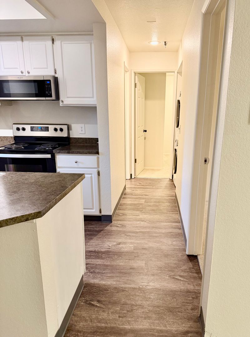 The Ballinger Apartment Homes - Beautifully Remodeled Two Bedroom/One Bath with Washer/Dryer, open kitchen with stainless appliances, spacious floor plan, boasts all new luxury flooring, new paint, newer lighting, and newer kitchen finishes with newer countertops. Bathroom upgrades with newer flooring, newer lighting and proximity to Light Rail station. Includes reserved parking and extra storage.